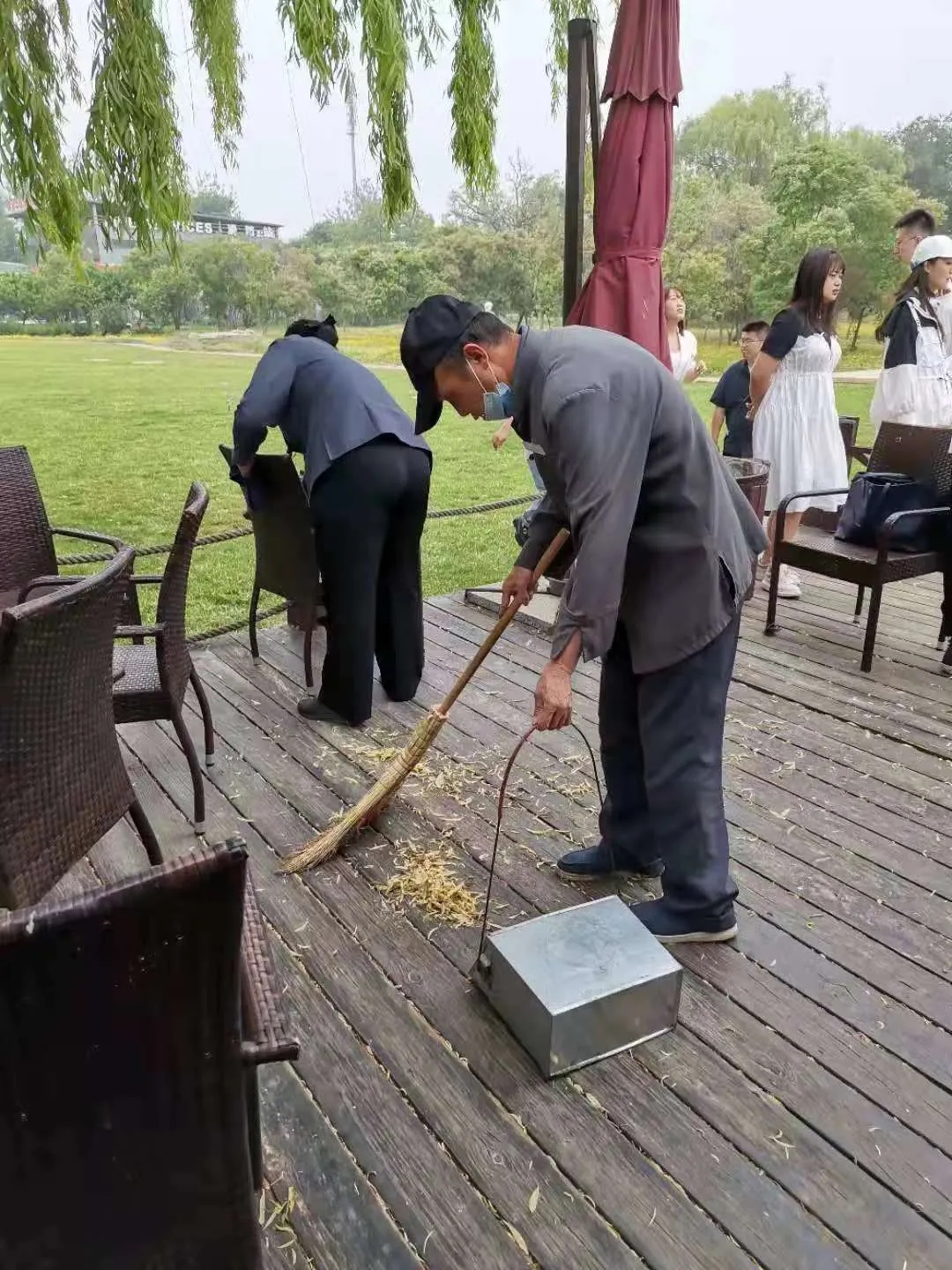據(jù)統(tǒng)計(jì),五一期間,中央廣播電視塔景區(qū)共接待登塔游客6000人次,就餐人員1300人次。為確保游客體驗(yàn),提升服務(wù)質(zhì)量,央視復(fù)興路項(xiàng)目部中塔項(xiàng)目全體員工奮戰(zhàn)一線、堅(jiān)守崗位,加大清掃力度,及時(shí)疏通清理衛(wèi)生間堵塞污物。嚴(yán)格落實(shí)疫情防控工作,加強(qiáng)消毒頻次,安排專人對相關(guān)區(qū)域進(jìn)行大清、對18層餐廳衛(wèi)生間等重點(diǎn)部位進(jìn)行清潔消毒。面對急劇增加的工作量,中廣人拿著清掃工具穿梭于景區(qū)每個(gè)角落,在平凡崗位上揮灑汗水,為維護(hù)景區(qū)環(huán)境干凈整潔,貢獻(xiàn)著中廣力量,獲得甲方領(lǐng)導(dǎo)對公司物業(yè)服務(wù)的高度認(rèn)可。