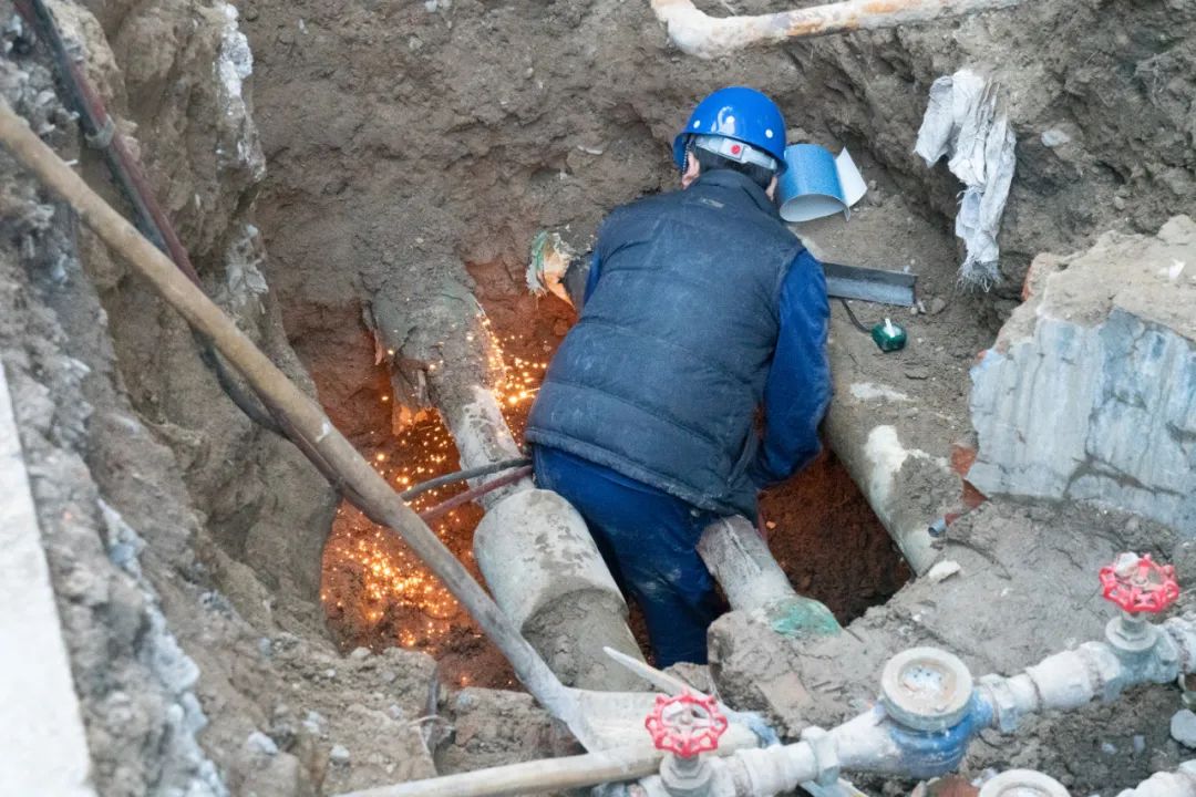當(dāng)晚21時15分,高區(qū)供熱管道再次出現(xiàn)嚴(yán)重漏水,維修人員立即上報項目負(fù)責(zé)人,并關(guān)閉高區(qū)閥門和循環(huán)泵,查找漏點??偩窒嚓P(guān)領(lǐng)導(dǎo)、公司領(lǐng)導(dǎo)、項目部負(fù)責(zé)人聞訊后都趕到現(xiàn)場指導(dǎo)搶修工作,維修人員不辭辛勞、連續(xù)奮戰(zhàn),對漏水點進行處理,并于凌晨2時30分恢復(fù)供暖。但由于管道老化、銹蝕,凌晨5時10分此處又再次出現(xiàn)漏水現(xiàn)象。1月8日上午,公司領(lǐng)導(dǎo)、技術(shù)總監(jiān)、技術(shù)管理部、物資部、項目部領(lǐng)導(dǎo)現(xiàn)場商討、確定解決方案,根據(jù)方案施工,于當(dāng)晚19點恢復(fù)供暖。