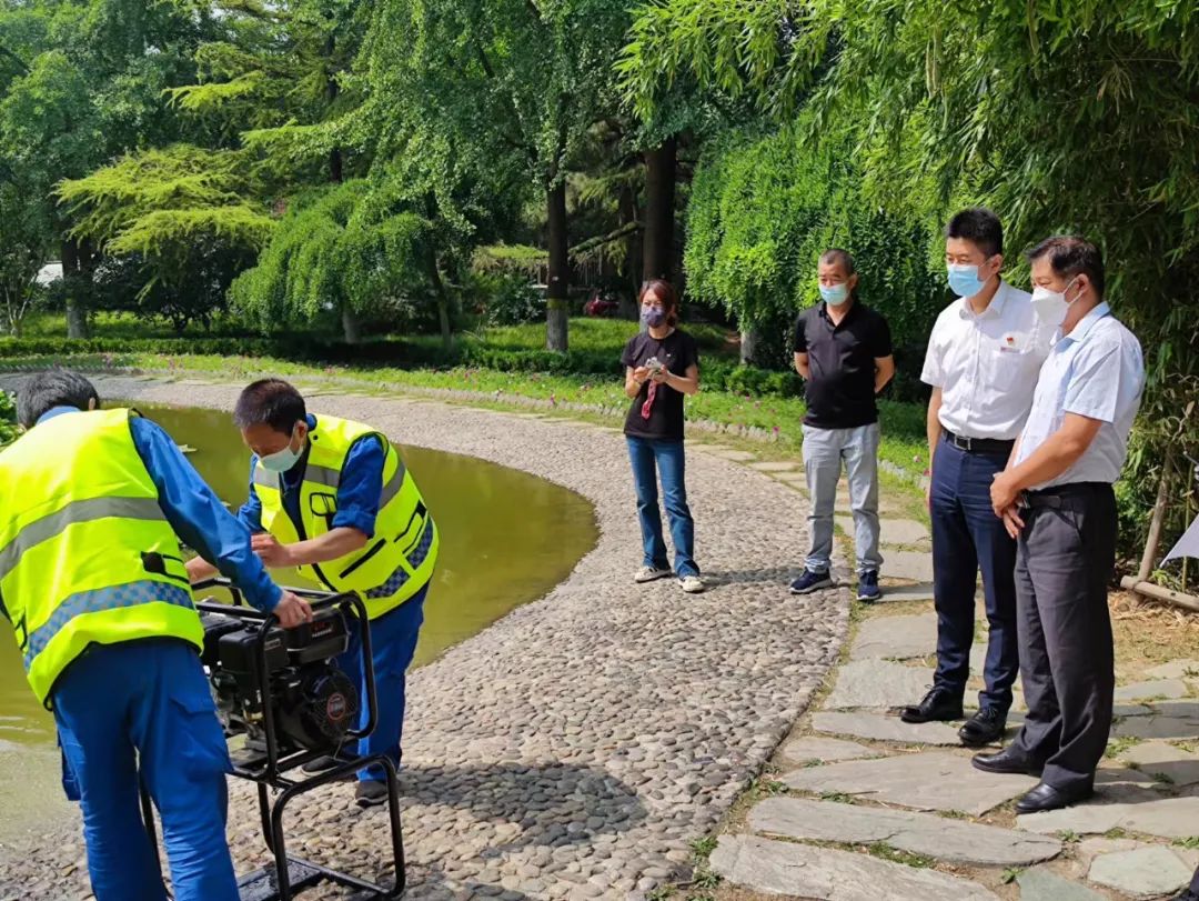 本次演練主要模擬紅色汛情預(yù)警下啟動的防汛演練活動。外圍人員在巡視時發(fā)現(xiàn)方樓后花園附近出現(xiàn)積水情況,存在極大的不安全隱患。防汛應(yīng)急搶險指揮組責(zé)任人項目部主管王兵接到險情報告,立即通知總指揮項目部副經(jīng)理李麗芳,發(fā)布啟動應(yīng)急防汛預(yù)案指令,防汛應(yīng)急搶險組、防汛物資設(shè)備保障組、現(xiàn)場安全保障組迅速組織集結(jié)。防汛應(yīng)急搶險組立即到防汛物資存放處穿戴防汛雨具,將汽油機水泵運輸?shù)诫U情處開展排險工作。與此同時其他小組成員及時將防汛沙袋擺放到險情通道處形成圍擋;組織人員安全撤離危險地帶。所有小組成員分工明確,各司其職開展搶險活動。在汛情得到有效控制后,防汛演練活動結(jié)束,整個演練過程指揮明確,各小組分工有序,責(zé)任明確,達(dá)到了防汛演練的預(yù)期目的。臺物業(yè)處領(lǐng)導(dǎo)對此次應(yīng)急防汛演練順暢完成都給予了高度肯定。
