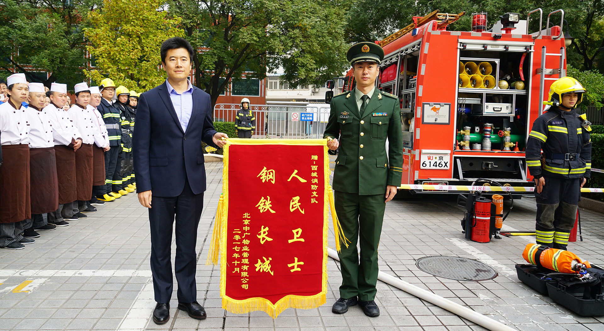 2017年10月25日上午九點(diǎn)三十分,由中廣物業(yè)管理有限公司音像資料館項(xiàng)目部與西城消防支隊(duì) “十九大”駐勤官兵聯(lián)合舉行消防安全知識(shí)培訓(xùn),首先公司總經(jīng)理安委會(huì)主任崔立新代表公司向西城消防支隊(duì)贈(zèng)送“人民衛(wèi)士,鋼鐵長(zhǎng)城”錦旗表示感謝,感謝西城消防支隊(duì)一直以來(lái)對(duì)公司消防安全工作的支持與幫助。西城消防支隊(duì)劉永強(qiáng)警官表示:十九大勝利閉幕,住地周邊沒(méi)有發(fā)生起火冒煙情況,離不開(kāi)各單位的共同努力,特別是中國(guó)廣播電視音像資料館大廈,地理位置特別重要,臨近代表住地,消防安全意識(shí)強(qiáng)、工作到位,感謝中廣物業(yè)給予消防工作的支持。隨后消防支隊(duì)駐勤消防員進(jìn)行消防培訓(xùn),培訓(xùn)內(nèi)容理論與實(shí)際相結(jié)合,消防支隊(duì)駐勤消防員詳細(xì)講解了消防車(chē)配置設(shè)施及使用、“119”消防報(bào)警流程及注意事項(xiàng),講解并實(shí)際操作了消防空氣呼吸器的佩戴及使用和室外消火栓的使用。參加培訓(xùn)的有公司機(jī)關(guān)部室全體員工、公司各部門(mén)的消防骨干、駐大廈各單位員工及餐廳工作人員總計(jì)100余人參加了培訓(xùn),通過(guò)消防安全知識(shí)的培訓(xùn),提升了大家的消防安全責(zé)任意識(shí)及應(yīng)對(duì)初期火災(zāi)的處置能力。